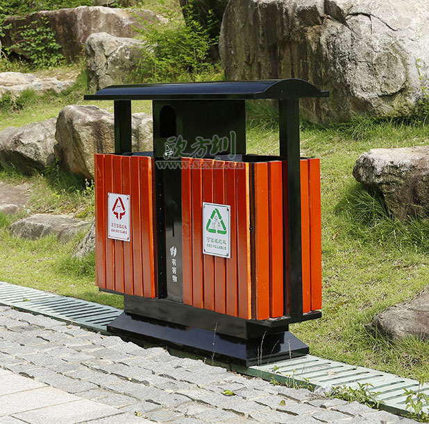 ? 深圳鋼木分類垃圾桶都是采用優質的鍍鋅板和國產木制作而成的桶身采用室外塑粉靜電噴涂,木條表面采用抗紫外線丙稀酸油漆多層噴涂,欣方圳的鋼木垃圾桶不僅非常耐用,即使在炎熱的陽光暴曬下,即使經過風吹雨打也很少會出現老化現象,并且可以給客戶定制生產各種各樣的外型設計。