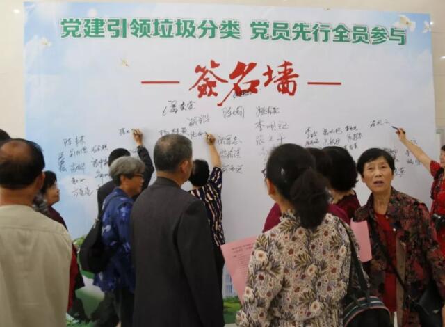 會后,黨員同志們在“黨建引領垃圾分類,黨員先行全員參與”簽名墻中簽名留影,以實際行動支持校園垃圾分類工作開展。