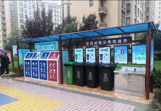 垃圾分類工作實施之前,生活小區垃圾收集處理一般是在小區定點位置設置垃圾分類站或垃圾分類亭、放置垃圾桶,然后由保潔人員定時清理。雖然多數小區同一位置會放置不同色彩的垃圾桶,并且注明不同色彩垃圾桶所對應的垃圾種類,為了增強居民自覺踐行垃圾分類的意識,提升環保理念,完善垃圾分類工作,很多小區已經撤銷了原來的垃圾桶分散放置,改為小區垃圾統一收集,統一分類。因此分類垃圾桶及分類垃圾站成了很多小區必不可少的垃圾收集處理設施。