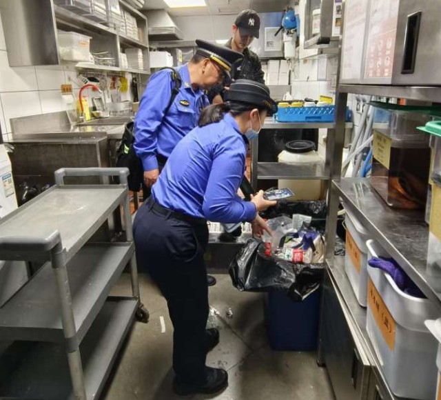 檢查過程中,工作人員深入門店后廚,查看商鋪內(nèi)垃圾分類情況。檢查內(nèi)容包括垃圾分類投放情況、垃圾純凈度、垃圾分類容器配置、標(biāo)志標(biāo)識規(guī)范、垃圾分類申報情況,以及店員垃圾分類知曉度情況等。執(zhí)法隊員對在檢查過程中,發(fā)現(xiàn)部分餐飲店存在未按規(guī)定設(shè)置垃圾分類收集容器、垃圾混投等行為,進行了嚴(yán)厲的處罰,共處罰分類投放1起,處罰申報7起,處罰缺桶4起,并要求商家限期整改。同時,工作人員向沿街商鋪發(fā)放了垃圾分類宣傳冊,并現(xiàn)場講解生活垃圾分類投放和回收等知識,普及垃圾分類有關(guān)法律法規(guī),增強沿街商鋪人員生活垃圾分類的意識。