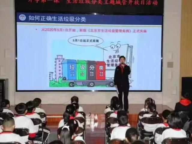 北京市城管執(zhí)法局、朝陽(yáng)區(qū)城管執(zhí)法局、勁松街道在陳經(jīng)綸中學(xué)帝景分校聯(lián)合開展“開學(xué)第一課”生活垃圾分類主題城管開放日活動(dòng)。