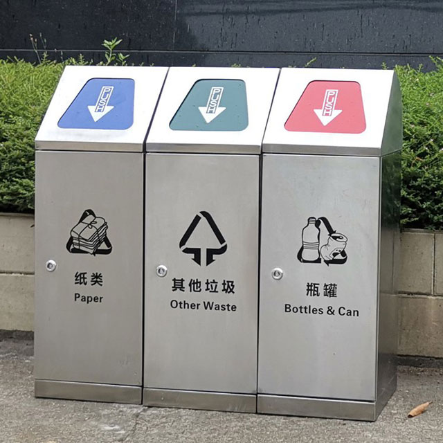當前位置:首頁 > 分類宣傳 > 環保尖兵密閉式三分類不銹鋼垃圾桶