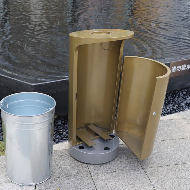 流暢線條,美觀大方:圓柱形的設計賦予了垃圾桶簡潔流暢的線條,給人一種現代、時尚的美感。這種簡約的造型能夠與各種戶外環境完美融合,無論是在繁華的城市街道,還是寧靜的公園、校園,都不會顯得突兀。它的存在不僅是一個垃圾收納容器,更像是一件精致的戶外裝飾品,為周邊環境增添了一份獨特的魅力。