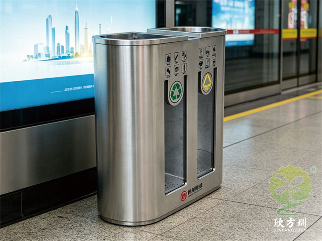 杭州地鐵站不銹鋼連體分類垃圾桶以匠心工藝守護(hù)城市文明
