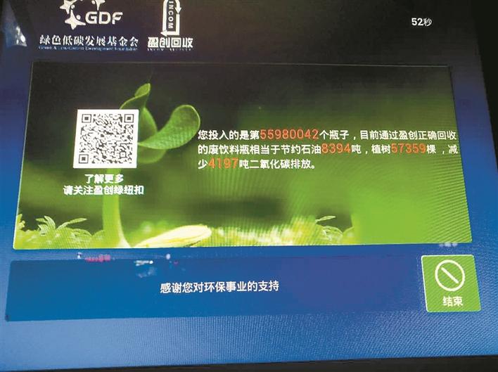 8月2日,韓女士又收集了家中20個塑料飲料瓶。這一次,她又獲利1元錢。屏幕上還顯示了她所投的瓶子是深圳第56023937個瓶子,和上次的數(shù)量相比,多了43895個。這也意味著,不到一周時間內(nèi),深圳人向這家回收公司投放了4萬多個塑料瓶。