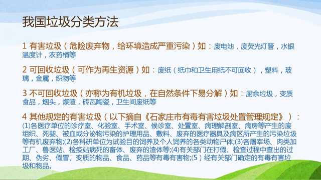 中國垃圾分類現狀和建議ppt全部內容:https://wenku.baidu.com/view/a9db5ad5ac51f01dc281e53a580216fc700a5398.html?from=search