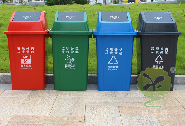 搖蓋式公園塑料分類垃圾桶高密度聚乙烯( HDPE )一次注模而成,絕無焊縫,經過嚴格質檢達到100%的防漏水率,還具有具有抗腐蝕,耐酸耐堿,無毒性,防凍耐熱優點。一般商家采用二次回收料,加收在熔,顏色雜亂,氣味刺鼻,易老化,易破裂。我們采用的是高度環保聚乙烯材料,質量有保障,桶身堅固不變形,無刺激性氣味。市面上普通的塑料桶的厚度約為3.5-4.0mm,桶身薄,磕碰易破碎,更換頻率高,我們的垃圾桶可以加厚,桶壁厚達6.45mm,桶身結實,耐撞擊,使用壽命長。塑料垃圾桶采用獨特的外形設計,外表美觀、大方。 塑料垃圾桶蓋可防垃圾氣味散發,更可防止蚊蟲、蒼蠅滋生,更衛生; 體積大、尖利、骯臟的垃圾物件可隨流動塑料垃圾桶一起運走,更方便、更安全。廣泛適用于各類公共場所(小區、寫字樓、學校、市政、工廠、物業等) 。