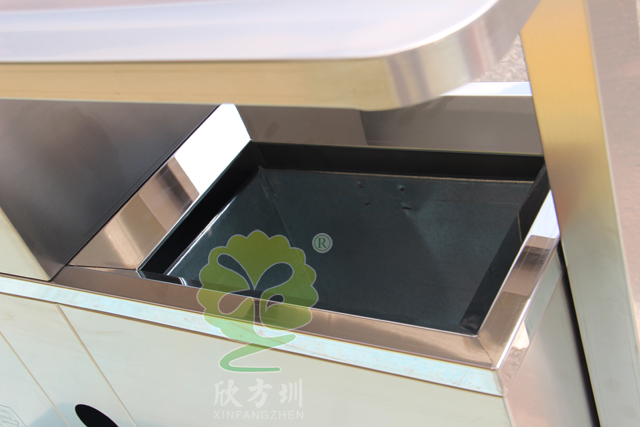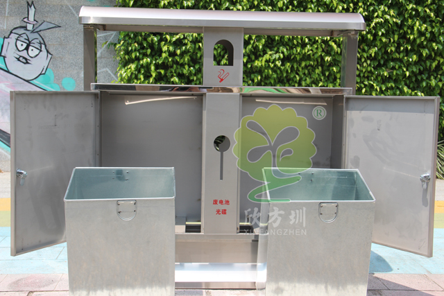 桶身有向兩側(cè)打開的門,內(nèi)部放置鍍鋅板內(nèi)桶,內(nèi)桶光滑摩擦小,不利于垃圾殘留,方便環(huán)衛(wèi)工人清倒垃圾。與其他的只有一層的垃圾桶比較,帶內(nèi)桶的雙層垃圾桶更干凈,因?yàn)檫@種垃圾桶非常方便清潔清洗,只需要將干凈內(nèi)桶與臟的更換就行。能夠清洗的垃圾桶不會(huì)有垃圾殘留,不會(huì)滋生細(xì)菌病毒,不會(huì)產(chǎn)生腐爛臭味,不會(huì)吸引蚊蟲鼠蟻,對(duì)于城市衛(wèi)生的清潔、城市面貌的提升效果非常大。