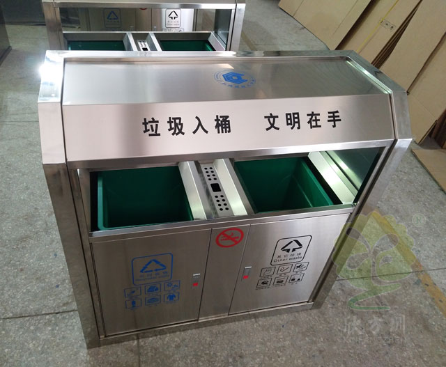 這款垃圾桶采用內外桶雙層模式,內桶使用玻璃鋼內桶,優點是質量輕,堅固耐用,防水防秀,相對于鐵皮內桶來說,使用時間更長,性價比更高。外殼使用優質304不銹鋼作為原材料,擁有良好的防腐防銹功能,使用先進的激光切割機、折彎機經過一系列專業精準的切割、折彎、組裝、焊接、打磨、絲印步驟處理而成。