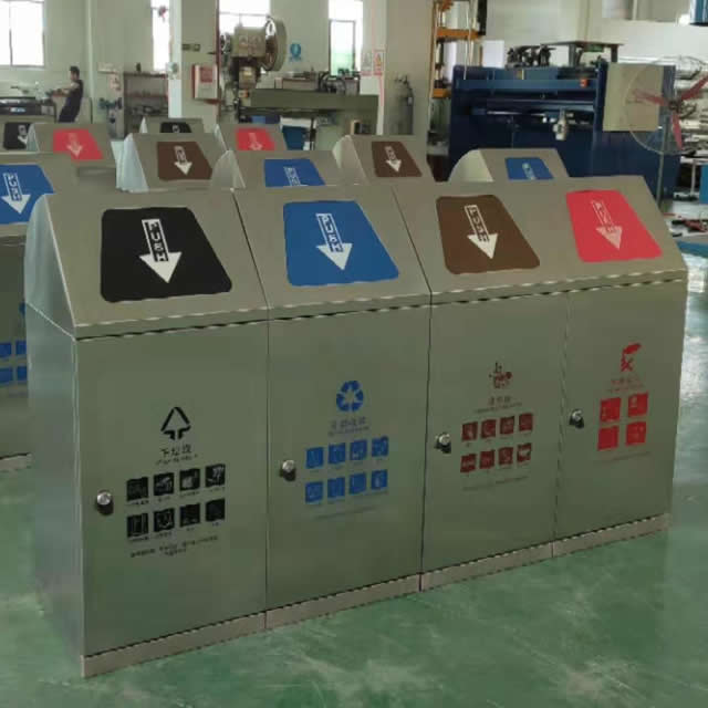 大型有蓋四分類不銹鋼垃圾桶的優(yōu)點: