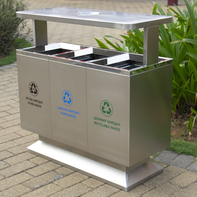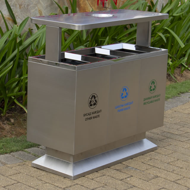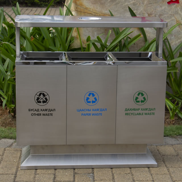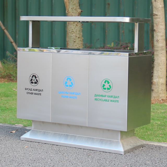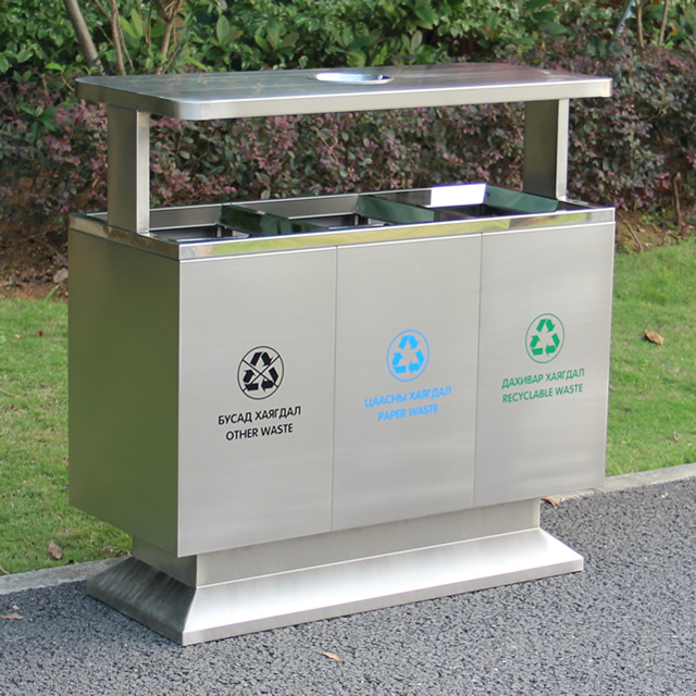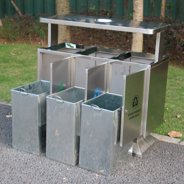 出口戶外三分類不銹鋼垃圾箱采用201#,202#,304#優(yōu)質(zhì)不銹鋼材料模壓成型,堅(jiān)固耐用,不易破損;耐火安全,抗高低溫,適合各種惡劣氣候條件;金屬亮澤,高雅美觀,廣泛適用于各種機(jī)場、商場高檔場所;內(nèi)外表面光潔,減少垃圾殘留,易于清潔;配置鍍鋅板內(nèi)桶,便于垃圾清倒;激光切割開料,尺寸精準(zhǔn),投口無縫焊接成型,打磨拋光處理圓滑不割手,欣方圳不銹鋼分類垃圾桶制作師傅有著多年經(jīng)驗(yàn)的熟手,每一道環(huán)節(jié)工藝成熟,質(zhì)量可靠,確保客戶如期交付驗(yàn)收。