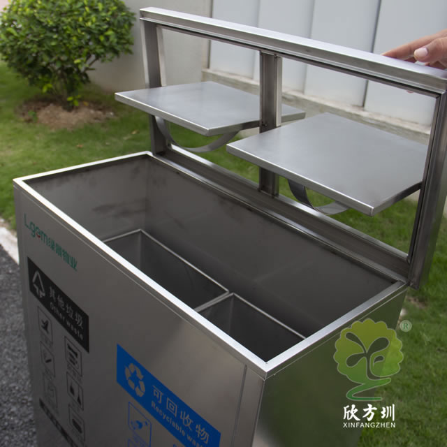 室內(nèi)兩分類搖蓋式不銹鋼垃圾桶采用201#,202#,304#優(yōu)質(zhì)不銹鋼材料模壓成型,堅(jiān)固耐用,不易破損;耐火安全,抗高低溫,適合各種惡劣氣候條件;金屬亮澤,高雅美觀,廣泛適用于各種機(jī)場(chǎng)、商場(chǎng)高檔場(chǎng)所;內(nèi)外表面光潔,減少垃圾殘留,易于清潔;配置鍍鋅板內(nèi)桶,便于垃圾清倒;激光切割開(kāi)料,尺寸精準(zhǔn),投口無(wú)縫焊接成型,打磨拋光處理圓滑不割手,欣方圳不銹鋼分類垃圾桶制作師傅有著多年經(jīng)驗(yàn)的熟手,每一道環(huán)節(jié)工藝成熟,質(zhì)量可靠,確??蛻羧缙诮桓厄?yàn)收。