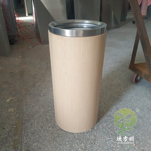 立式仿木紋圓柱形不銹鋼垃圾桶