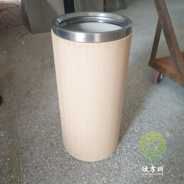 立式仿木紋圓柱形不銹鋼垃圾桶產品詳情: |