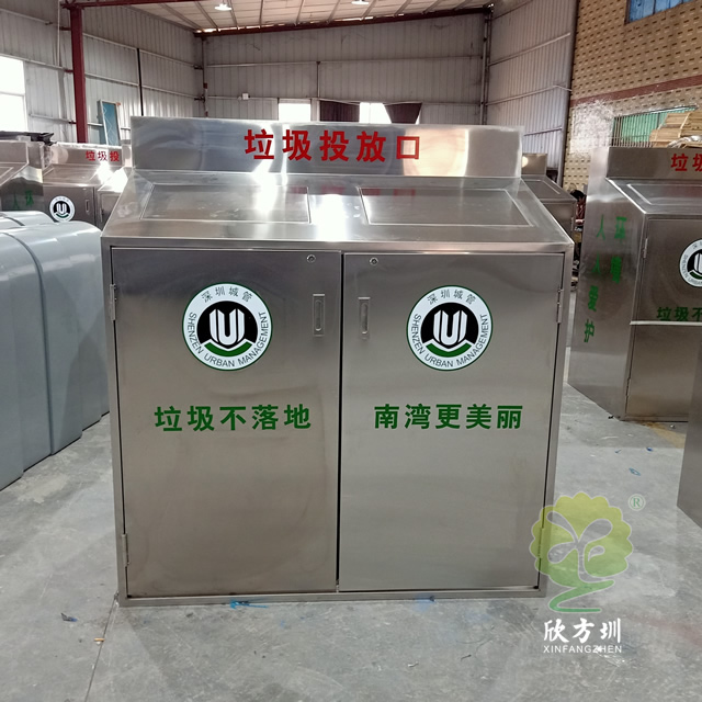 戶外小區大容量不銹鋼分類垃圾箱一種存放垃圾的容器,可以采用201、304、316等不銹鋼制作,表面可以采用烤漆、噴塑、鏤空、UV打印等工藝處理,因為不銹鋼耐空氣、蒸汽、水等弱腐蝕介質和酸、堿、鹽等化學浸蝕性介質腐蝕,所以不銹鋼垃圾桶耐用性高。全身不銹鋼制作的垃圾桶還具有防火功能,堅固耐用。