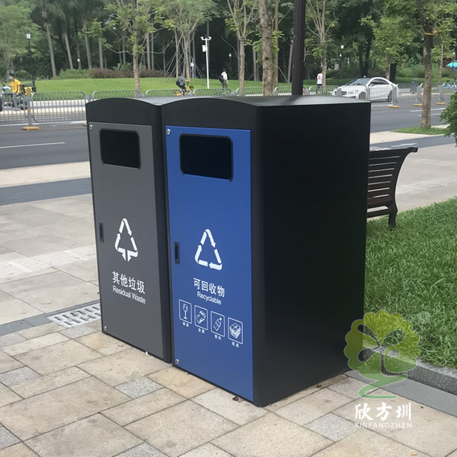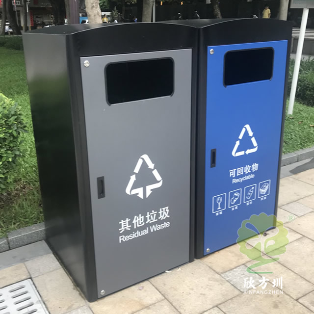戶外灰色噴塑不銹鋼分類垃圾桶是欣方圳設計生產的一款經典熱銷垃圾桶,這款垃圾桶雖然使用201#不銹鋼制作而成,是深圳市政道路的新款垃圾桶,但是外形采用了方形分類,使其看起來有一股自然大方氣質,特別適合各種市政道路、戶外公園、別墅小區、學校廣場等場景使用。這款垃圾桶外表經過防腐工藝處理,防水防腐蝕、經久耐用、工藝精湛、物美價廉。如果你對這款垃圾桶感興趣,請直接聯系我們報價。