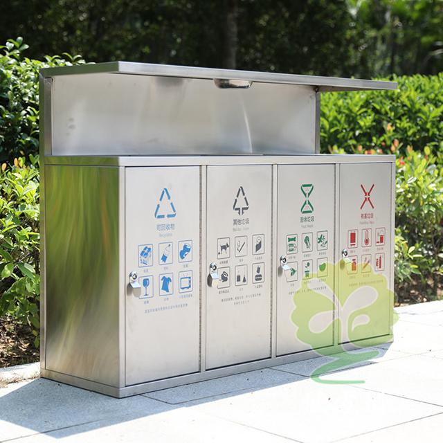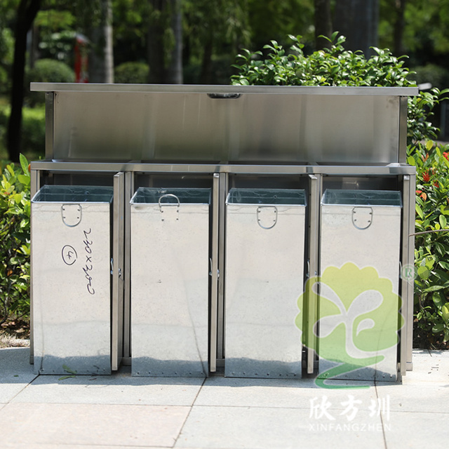 戶外市政街道四連體不銹鋼垃圾箱是欣方圳設計生產的一款經典熱銷垃圾桶,這款垃圾桶雖然使用不喜歡制作而成,但是外形采用了方形單筒,使其看起來有一股自然大方氣質,特別適合各種歷史景區、戶外公園、別墅小區、學校廣場等場景使用。這款垃圾桶外表經過防腐工藝處理,防水防腐蝕、經久耐用、工藝精湛、物美價廉。如果你對這款垃圾桶感興趣,請直接聯系我們報價。