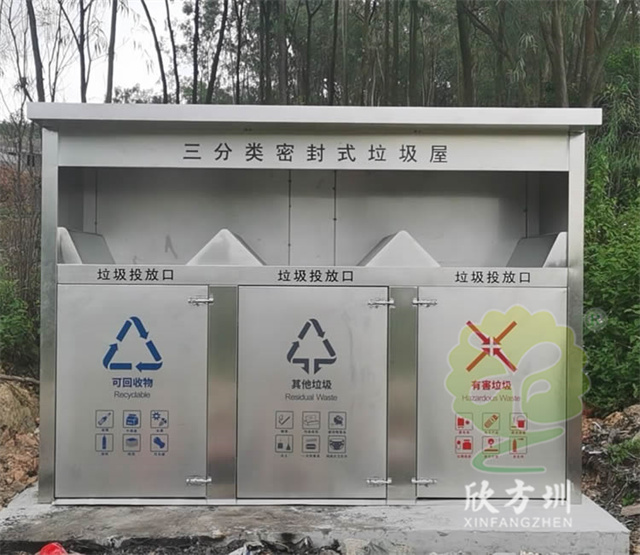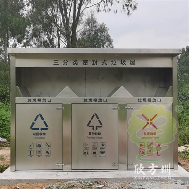 戶外密閉式三連體不銹鋼分類垃圾桶