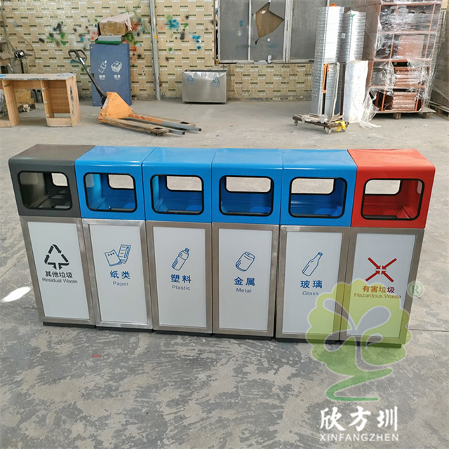 室外學校組合式不銹鋼分類回收箱桶身使用了201#不銹鋼1.0厚的板材制造,雙面投口方形單筒組合式擺放分類設(shè)計,表面采用了多色彩噴塑可以按照用戶需要烤漆,可絲網(wǎng)印刷玻璃、金屬、塑料、紙類、其他垃圾、有害垃圾等最新國標分類標識,取出頂部投口可取出內(nèi)置的內(nèi)筒方便清理廢物。