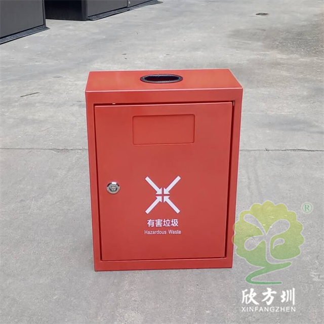 掛壁式噴粉烤漆方形不銹鋼有害垃圾箱采用0.8mm厚201不銹鋼板制造,也可以采用鍍鋅鐵板制作,方形掛壁式橢圓形直投口設(shè)計(jì),金屬表面噴粉烤漆紅色上色,正面采用三角鑰匙可以取出內(nèi)置的鍍鋅板內(nèi)筒,投口帶膠墊防止投放時(shí)刮傷手掌。