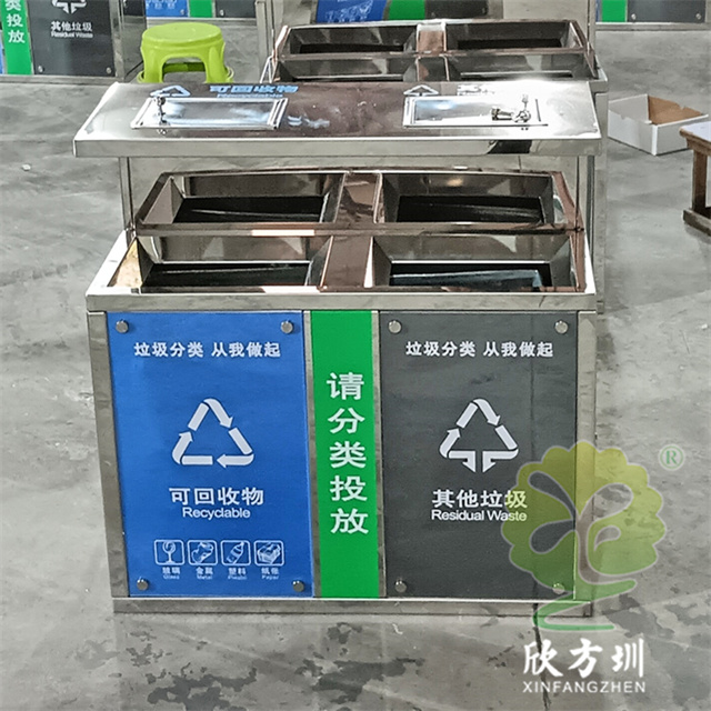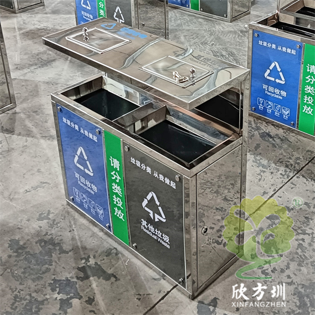 戶外城市街道鏡面不銹鋼分類垃圾桶采用了201不銹鋼板1.0毫米厚制作,也可以使用304不銹鋼板,正面亞克力板制作,不銹鋼表面鏡面處理,側(cè)面可以使用三角鑰匙開門取出內(nèi)筒,底部上方帶兩個(gè)把手打開兩個(gè)煙灰盅方便滅煙,亞克力和上方絲網(wǎng)印刷國(guó)標(biāo)分類標(biāo)識(shí),支持定制電鍍或者噴粉工藝處理。