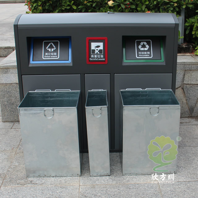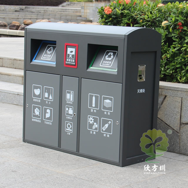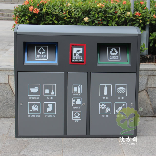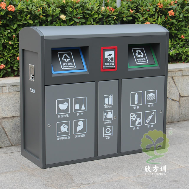 室外噴塑三分類冷軋鋼板垃圾桶是欣方圳設計生產的一款時尚藝術垃圾桶,這款垃圾桶工藝精湛、外形美觀、非常受市場歡迎,被許多采購客戶擺放于街道、物業小區、景區公園等。如果您有采購垃圾桶的需求,請聯系我們報價,我們也接受來圖定制,期待與您的合作。