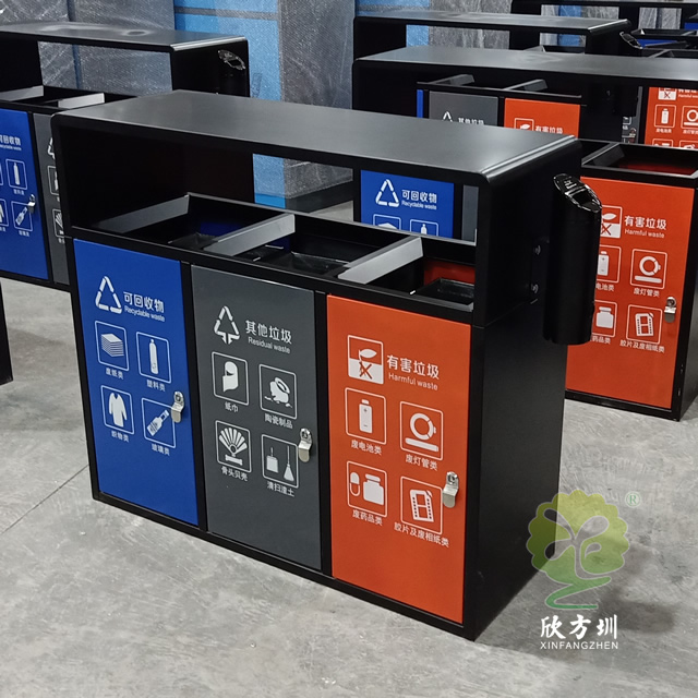 戶外物業三分類鋼制垃圾箱是欣方圳設計生產的一款經典熱銷垃圾桶,這款垃圾桶雖然使用鋼板制作而成,但是外形采用了噴塑設計,使其看起來有一股自然古典氣質,特別適合各種歷史景區、戶外公園、別墅小區、學校廣場等場景使用。這款垃圾桶外表經過防腐工藝處理,防水防腐蝕、經久耐用、工藝精湛、物美價廉。如果你對這款垃圾桶感興趣,請直接聯系我們報價。