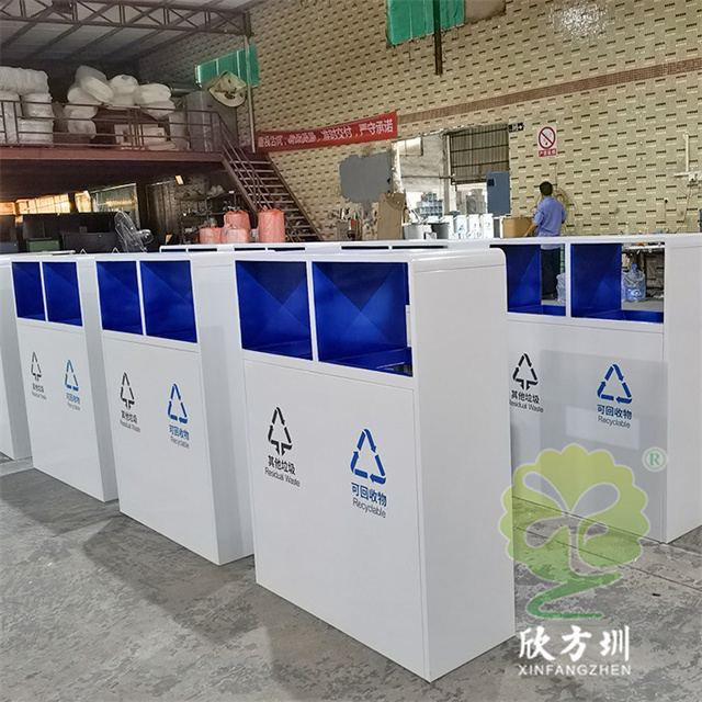 戶外方形烤漆白色鍍鋅板分類垃圾桶產(chǎn)品詳情: |
