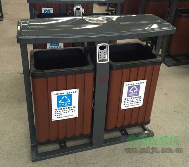 戶外經典熱銷鋼木分類垃圾桶桶身采用優質進口防腐木、進口山樟木或水曲柳制作,可抑制生物、微生物的寄生、繁殖與侵蝕,延長木材在戶外環境中的使用壽命。表面經過除蟲,防蟻,防腐,烘干等專業處理后加工成型,經久耐用,防腐美觀。桶蓋/內膽采用FRP玻璃鋼材料制造,具有防腐、防生銹、易清潔等特點。底座采用玻璃鋼纖維制作,從根本上解決了防腐、防盜、生銹的問題,產品在戶外的使用壽命大大增強。此款垃圾桶無論是從外觀,性能還是環保方面來講都十分優越,尤其適合擺放在花園,公園,小區,學校,街道,游樂園等場所,備受客戶青睞。