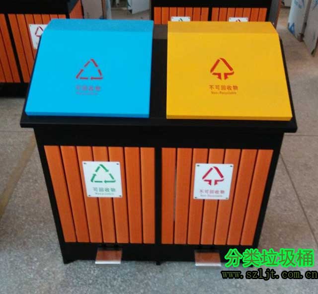 戶外腳踏式鋼木分類垃圾桶桶身采用優質進口防腐木、進口山樟木或水曲柳制作,可抑制生物、微生物的寄生、繁殖與侵蝕,延長木材在戶外環境中的使用壽命。表面經過除蟲,防蟻,防腐,烘干等專業處理后加工成型,經久耐用,防腐美觀。桶蓋/內膽采用FRP玻璃鋼材料制造,具有防腐、防生銹、易清潔等特點。底座采用玻璃鋼纖維制作,從根本上解決了防腐、防盜、生銹的問題,產品在戶外的使用壽命大大增強。此款垃圾桶無論是從外觀,性能還是環保方面來講都十分優越,尤其適合擺放在花園,公園,小區,學校,街道,游樂園等場所,備受客戶青睞。