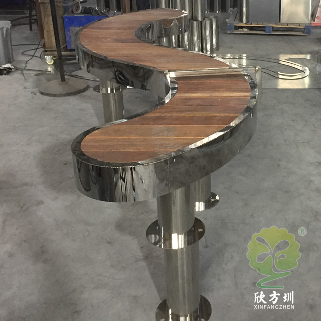 戶外大型S形不銹鋼休閑椅采用不銹鋼板材和山樟木制作而成,我們嚴格把握各個工藝環節,外觀簡約,線條優雅,時尚簡約,防腐防銹,適用于廣場,商場,公園,景區,街道,商業街,道路等公共場所。